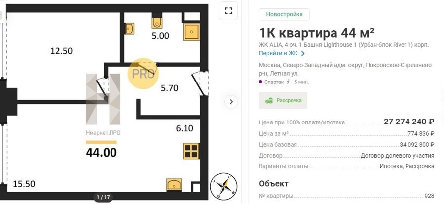 Площадь от 34 м2