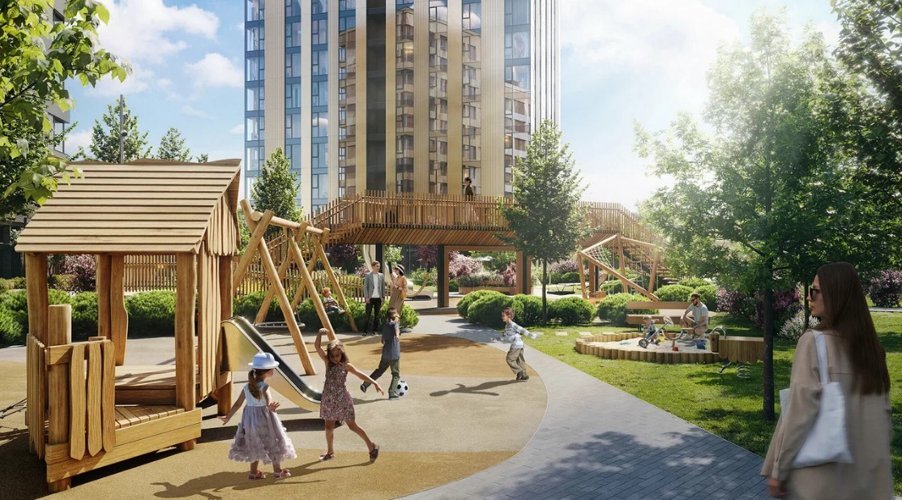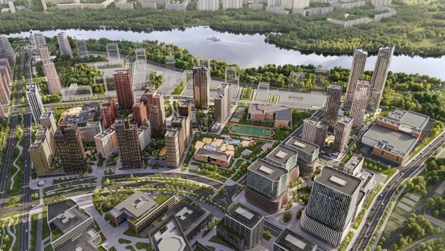 Новый жилой район спроектирован в концепции «двор без машин». На закрытой охраняемой территории разместятся подземные паркинги, зоны для отдыха, дорожки для бега, спортивные площадки и зеленые зоны общей площадью 19,5 га. Жители смогут прогуливаться в центральном парке и по благоустроенной набережной Москвы-реки.