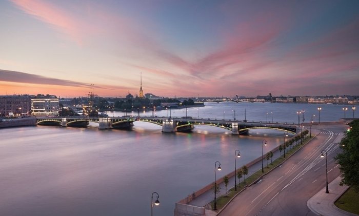 Просыпаясь вы видите, как река играет бликами в первых солнечных лучах, а с наступлением сумерек река превращается в зеркало, отражающее огни города.