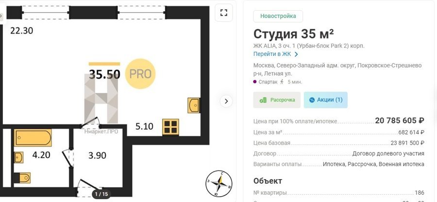 Площадь от 22 м2